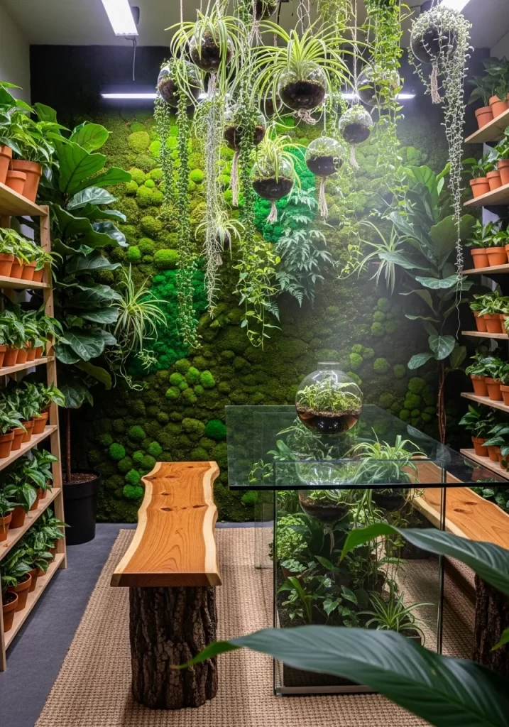 Small apartment living can often separate us from nature, but this aesthetic brings the outdoors inside. A living moss wall feature serves as a lush, oxygen-rich backdrop for your sleeping area. A low-profile pallet-style wooden bed frame keeps the visual height low, making the room feel more expansive.