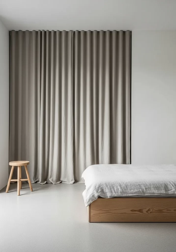 Natural light plays a huge role in this design. Sheer linen curtains allow sunshine to filter through while maintaining your privacy. A textured knit throw adds depth to the bed without overwhelming the limited floor space. Simple line art on the wall serves as a sophisticated focal point that does not make the area feel cramped.