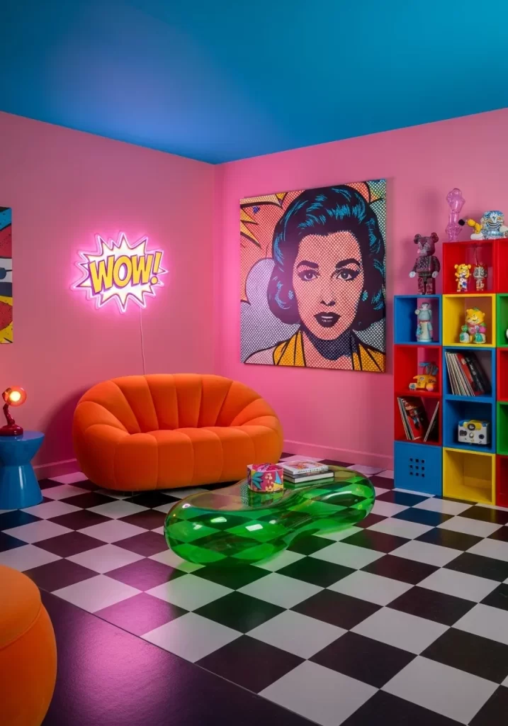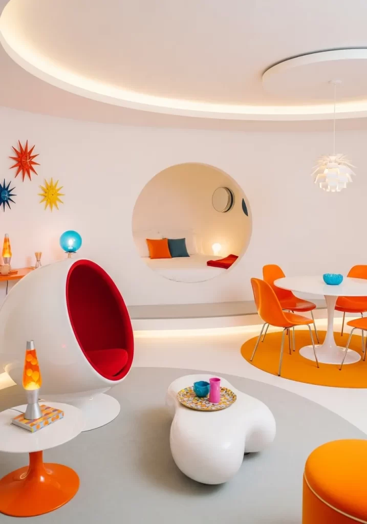 - Place an orange lava lamp on a side table to add a retro, glowing element.