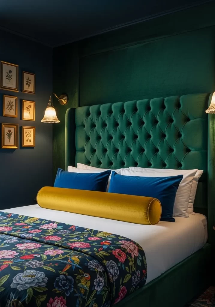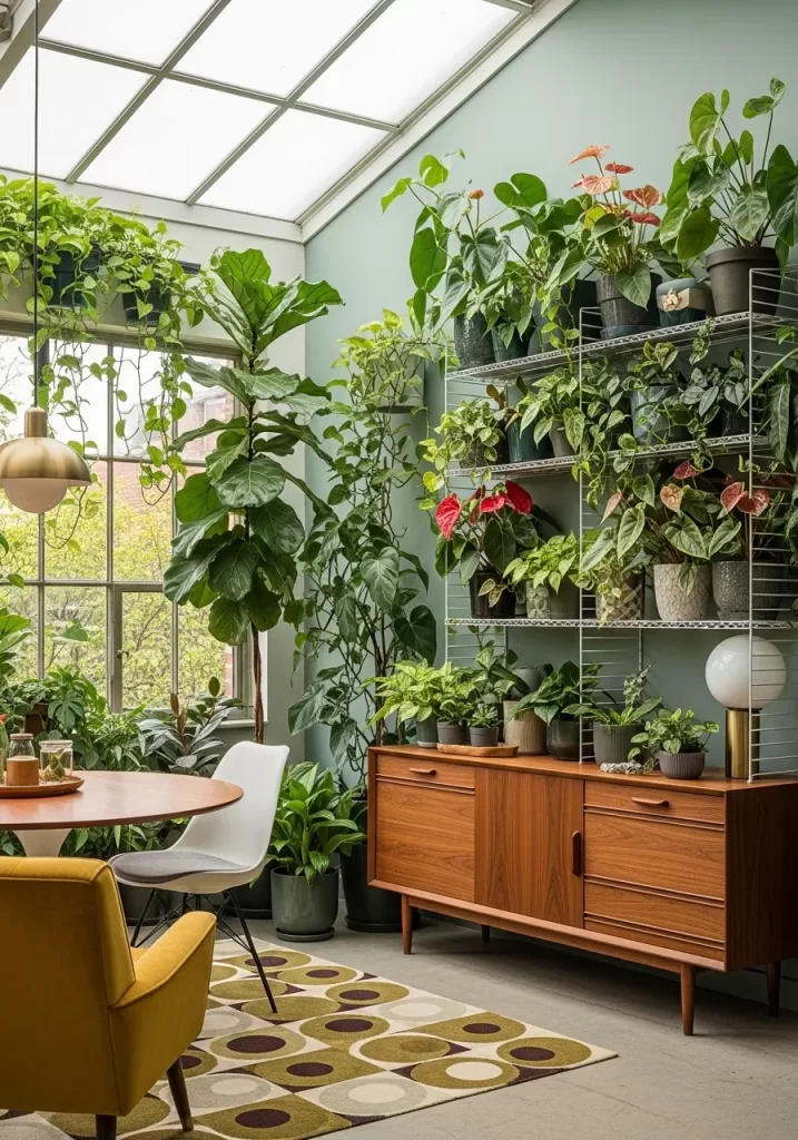 Hanging plants and patterned floor cushions provide a relaxed, grounded feel that encourages lounging. The combination of green, gold, and wood creates a warm, natural palette that feels like a hidden garden. This design is for the person who loves to travel and wants a home that feels like a collection of beautiful memories. It utilizes wall art and hanging plants to save floor space while adding massive visual interest.