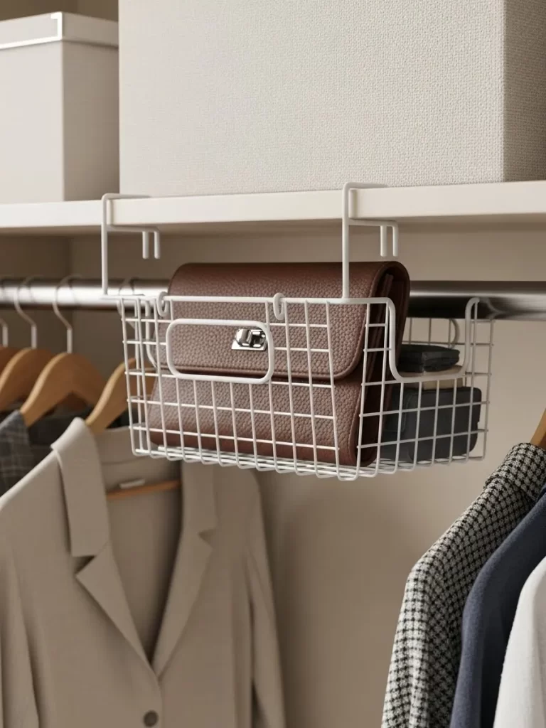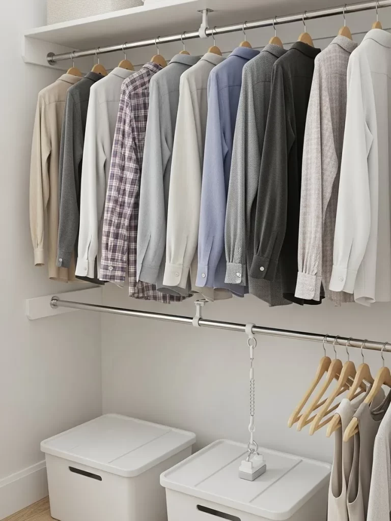 Small closets often feel cramped because we leave the bottom half empty. Adding a secondary rod makes use of that wasted area. It keeps your clothes organized and prevents them from wrinkling in a crowded space. Your wardrobe will look much more tidy.