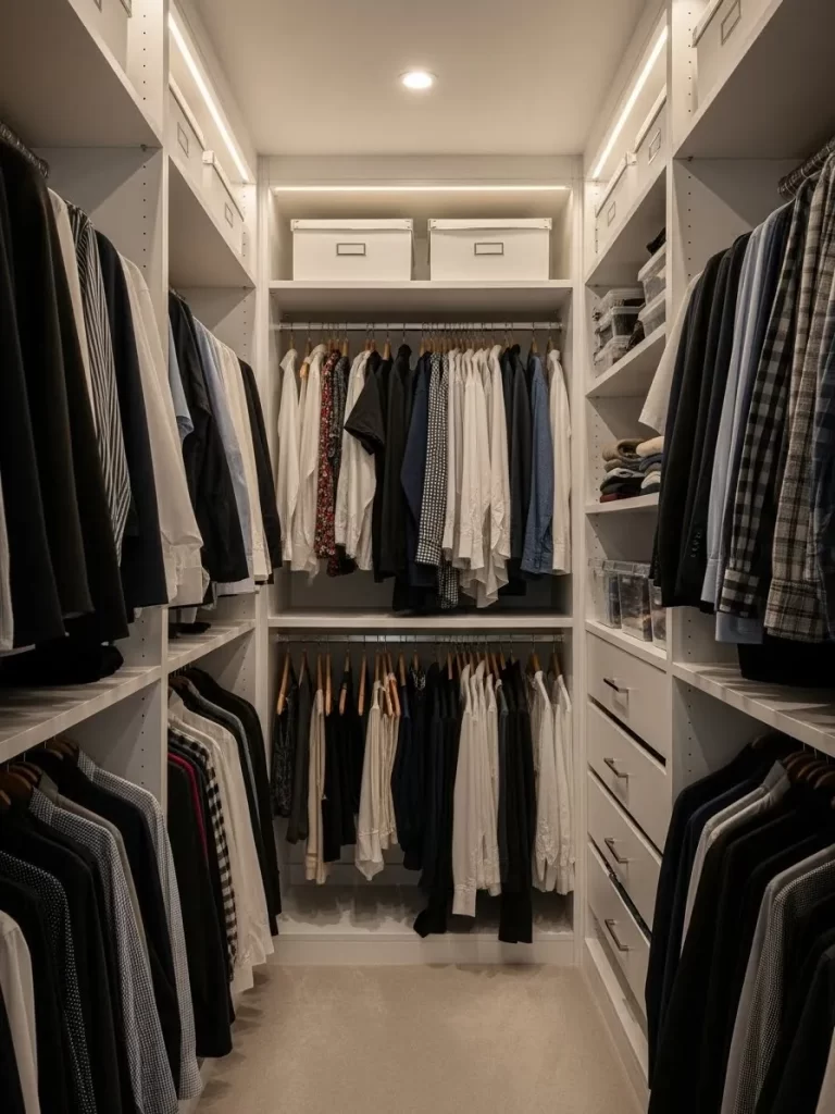 Grouping items by category or color keeps the space looking neat. Consistent hangers and labeled bins create a professional look in any wardrobe.