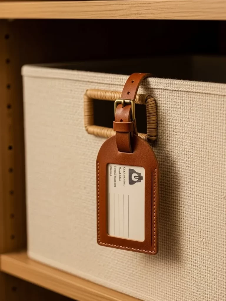 Give your storage bins a luxury look by adding high quality leather labels. These tags make it easy to identify the contents of your boxes from a distance. You can use them on woven baskets, plastic bins, or fabric cubes.