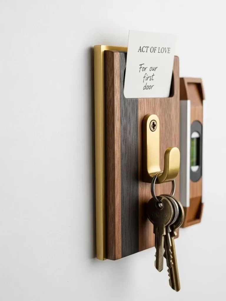 Solid wood grains bring a touch of luxury and nature into a modern home. This functional piece of decor looks much more expensive than a plastic alternative. You can easily mount it to the wall using strong adhesive or small screws. Gifting a key holder shows you care about the daily comfort and organization of your partner. It is a durable and stylish addition to any hallway or office space.
