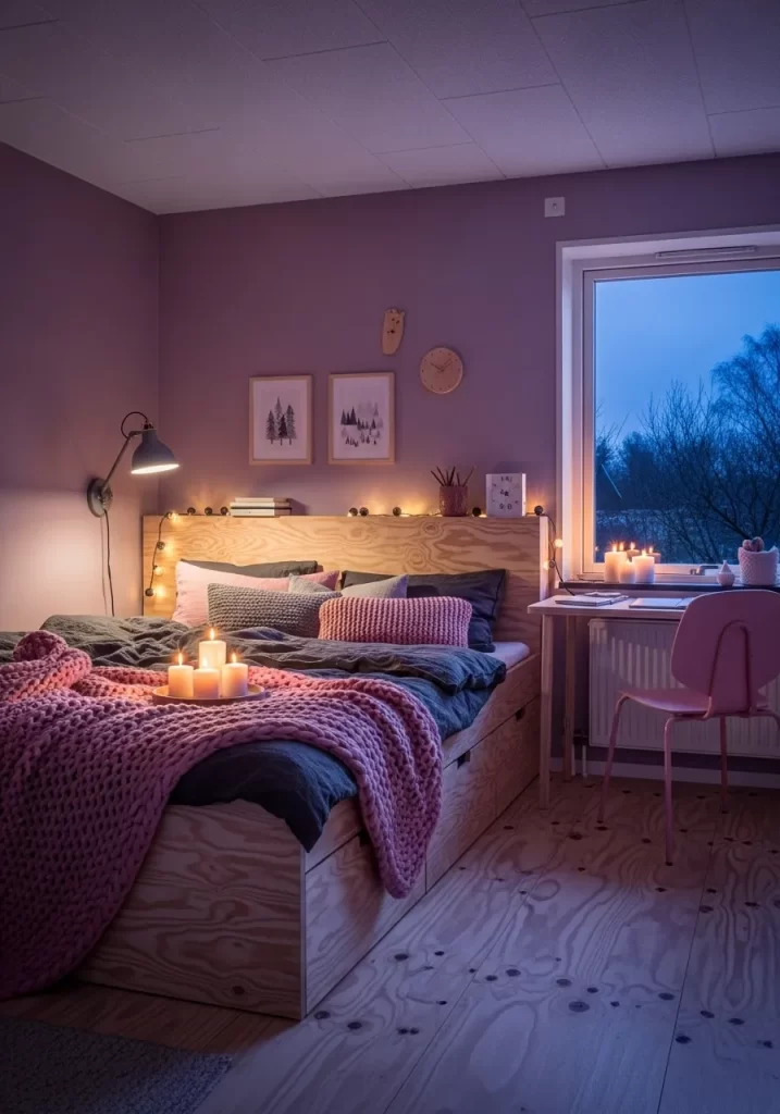 - Add a small bedside lamp for soft lighting in the evening.