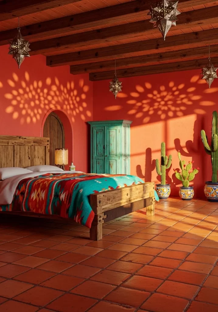 - Paint the other walls in a warm terracotta pink for contrast.