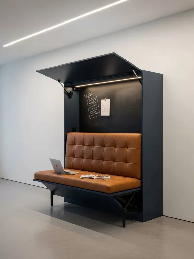 This wooden bench attaches directly to your wall to save floor space. It stays folded up flat when you do not need it. This design is excellent for narrow entryways or small living rooms.