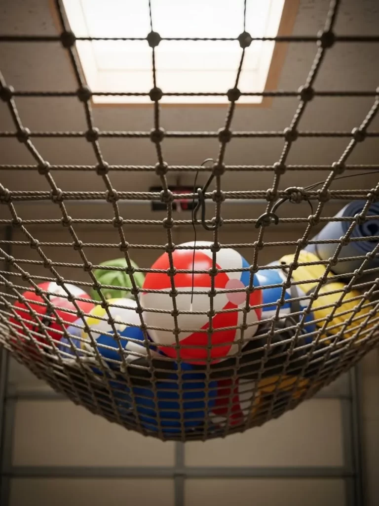 4 Creating specific zones for sports and tools keeps the room functional for everyone.