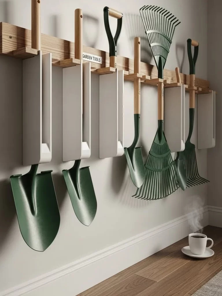 Sturdy brass hooks hold heavy bags and dog leads without bending. The combination of wood and metal creates an attractive look for your entryway. Every family member gets a dedicated spot for their gear. This setup simplifies your daily routine and keeps the garage tidy.