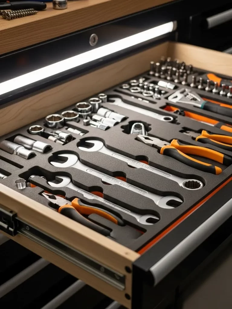 Loose tools in a drawer can become damaged or difficult to find. These foam inserts provide a specific home for every wrench and pair of pliers. You can see instantly if a tool is missing from your collection. The dark foam creates a professional look that mirrors high end mechanic shops.