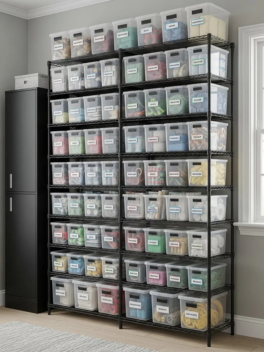 Grouping these categorized bins onto a metal shelving unit maximizes vertical space. This system is extremely effective for managing items that are only needed once or twice a year, like decorations, seasonal clothing, or camping supplies. Color coding and consistent labeling removes the guess work and transforms a mountain of seasonal storage into easily managed blocks of organized containers.