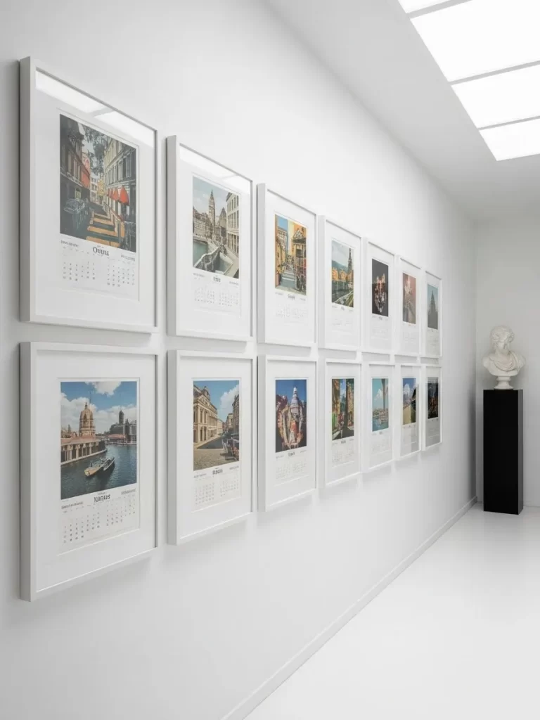 Empty walls often make a house feel cold or unfinished. A wooden magnetic hanger provides a simple way to display large art without the weight of a traditional frame. This setup highlights the beauty of architectural prints or bold photography.