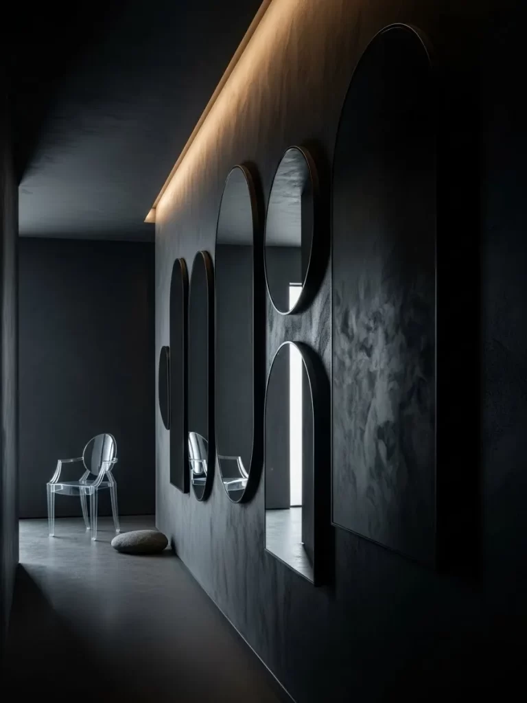 The metallic texture catches the sunlight as it moves through the room. Leaning such a large piece against the wall adds a casual yet intentional vibe. It is a cost effective way to create a massive focal point.