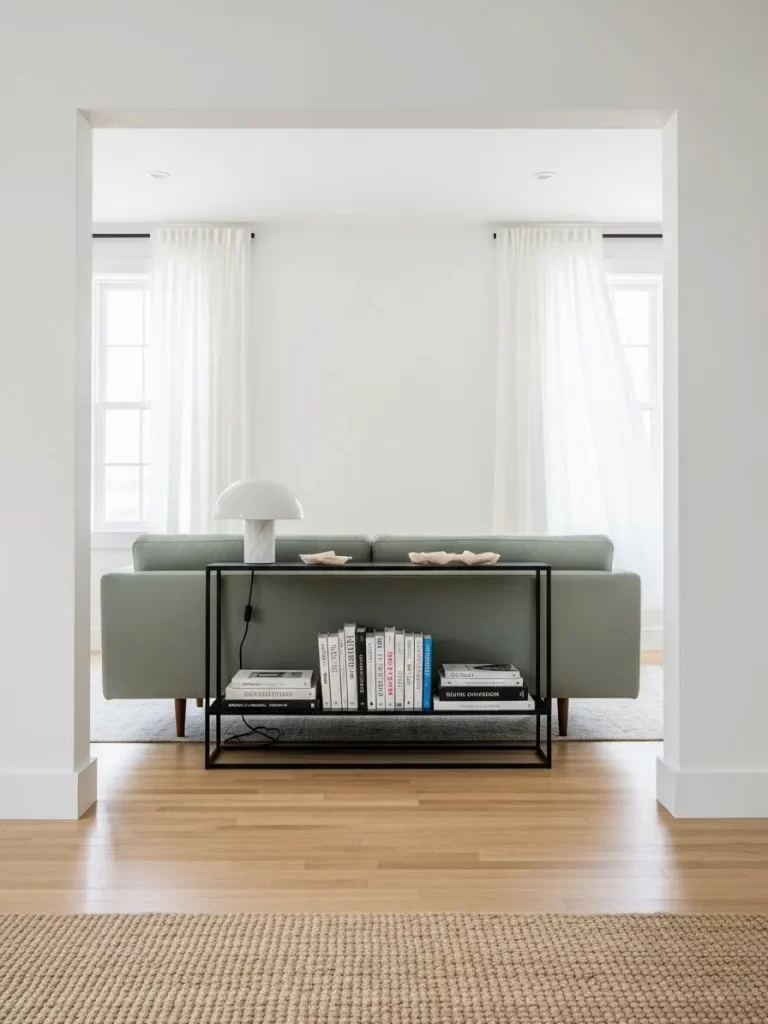 Open-frame furniture allows you to see more of your floor, which helps small spaces feel much larger. This bench is a perfect “transitional” piece that works as extra seating or a place to display art books. It pairs beautifully with simple line art on the walls to create a gallery-like atmosphere.