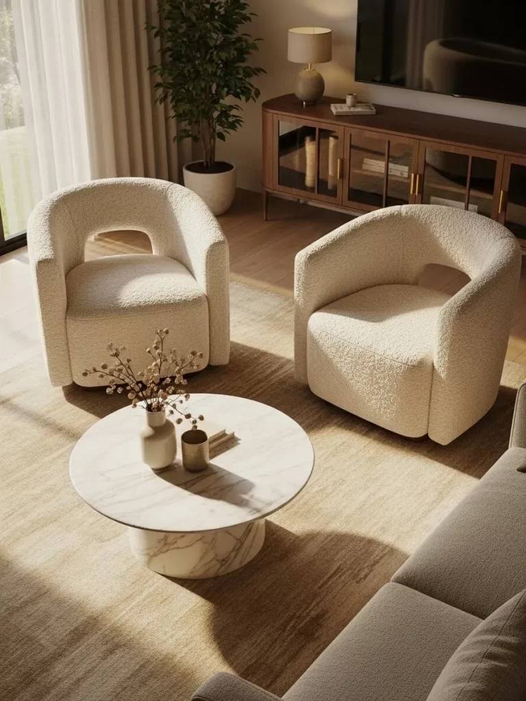 Velvet has a natural sheen that catches the light, making your seating area look more expensive instantly. Draping a blanket over one side of a chair creates a relaxed, inviting atmosphere. This is the fastest way to update your decor without using any tools at all.