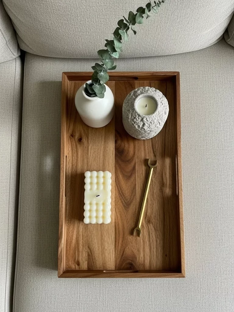Step 6: Final placement Position the tables on either side of your sofa or in front of an armchair. Add a small white candle or a gold sconce on the wall above to complete the luxurious look.