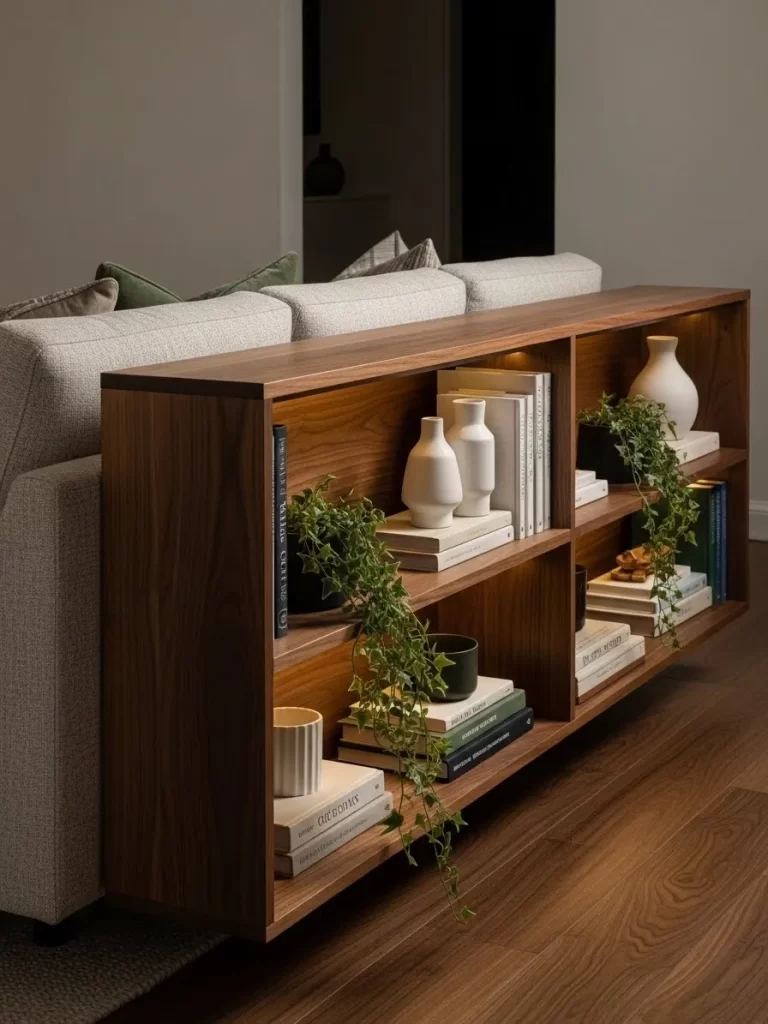 Step 4: Style the shelves Place books on the lower levels and your “hero” items on top. Let the plants drape over the edges to soften the wooden lines.
