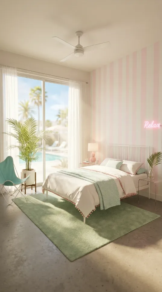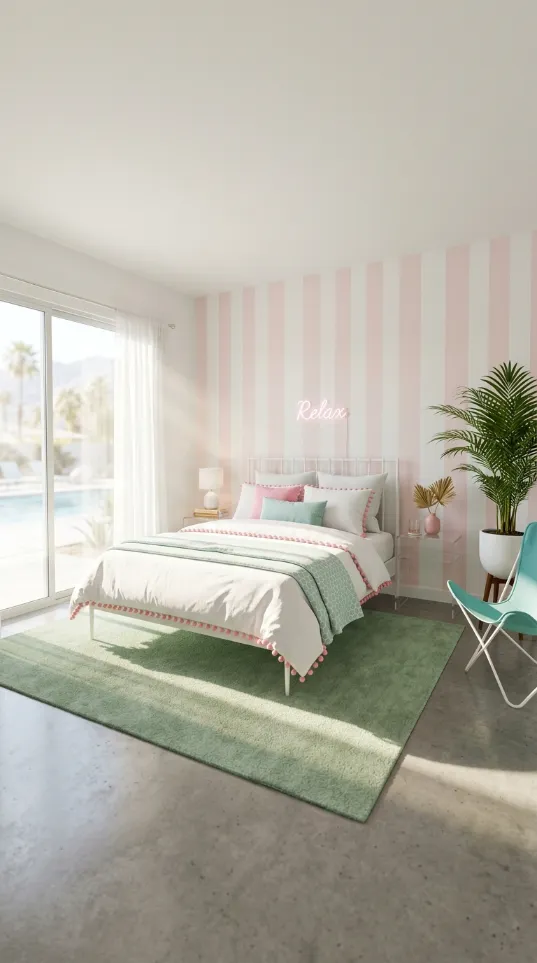 You can achieve this high end look on a tiny budget. These geometric shapes evoke a sense of 1950s optimism. This design choice pairs well with pastel furniture and neutral bedding. It serves as a great alternative to expensive wallpaper or professional murals. Your bedroom will instantly feel like a curated vintage retreat.