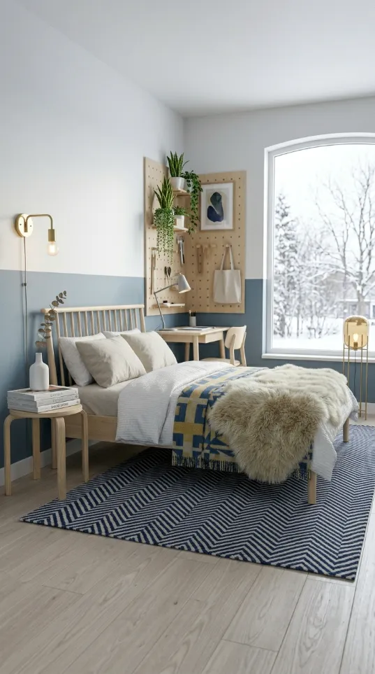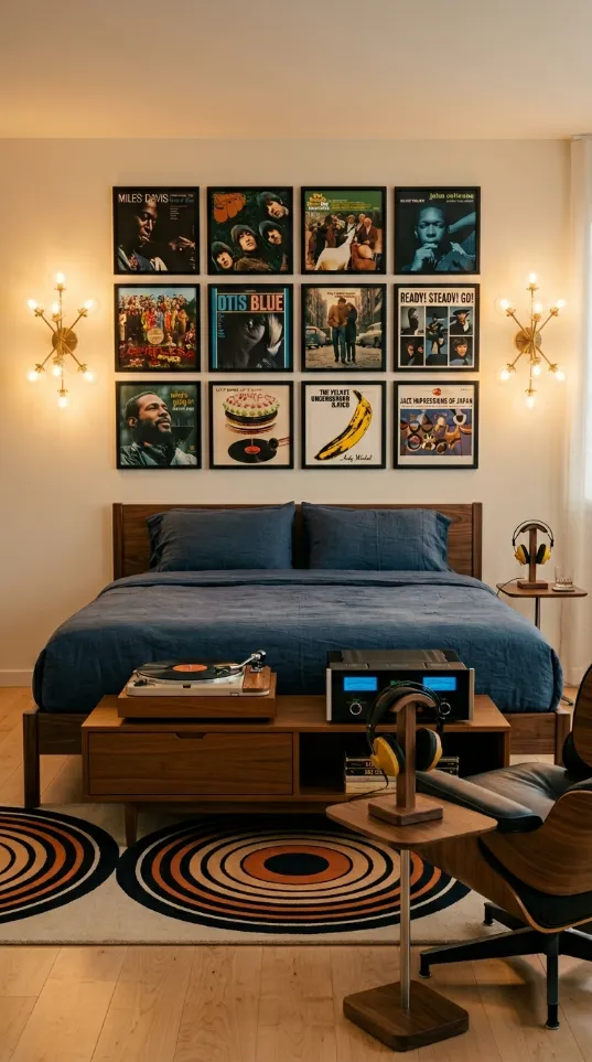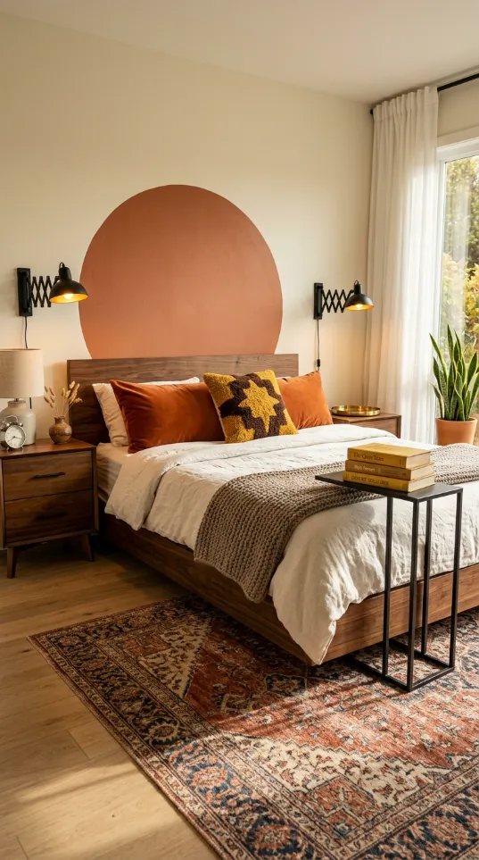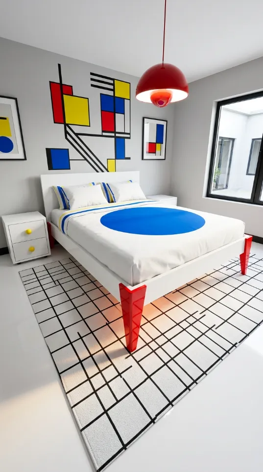 The design feels intellectual yet playful. You do not need expensive art when your wall becomes the masterpiece. Minimalist furniture keeps the focus on the wall decor. You can transform a plain room into a gallery with just a few cans of paint. Your bedroom will look like a curated piece of functional art. It is an excellent choice for those who love mid century modern history.