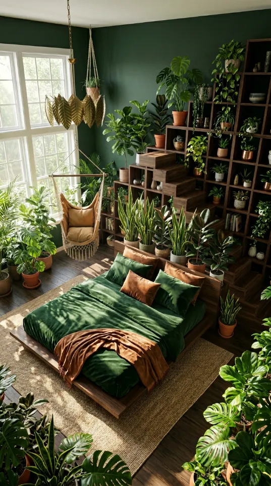 - Place a low wood platform bed in the center.