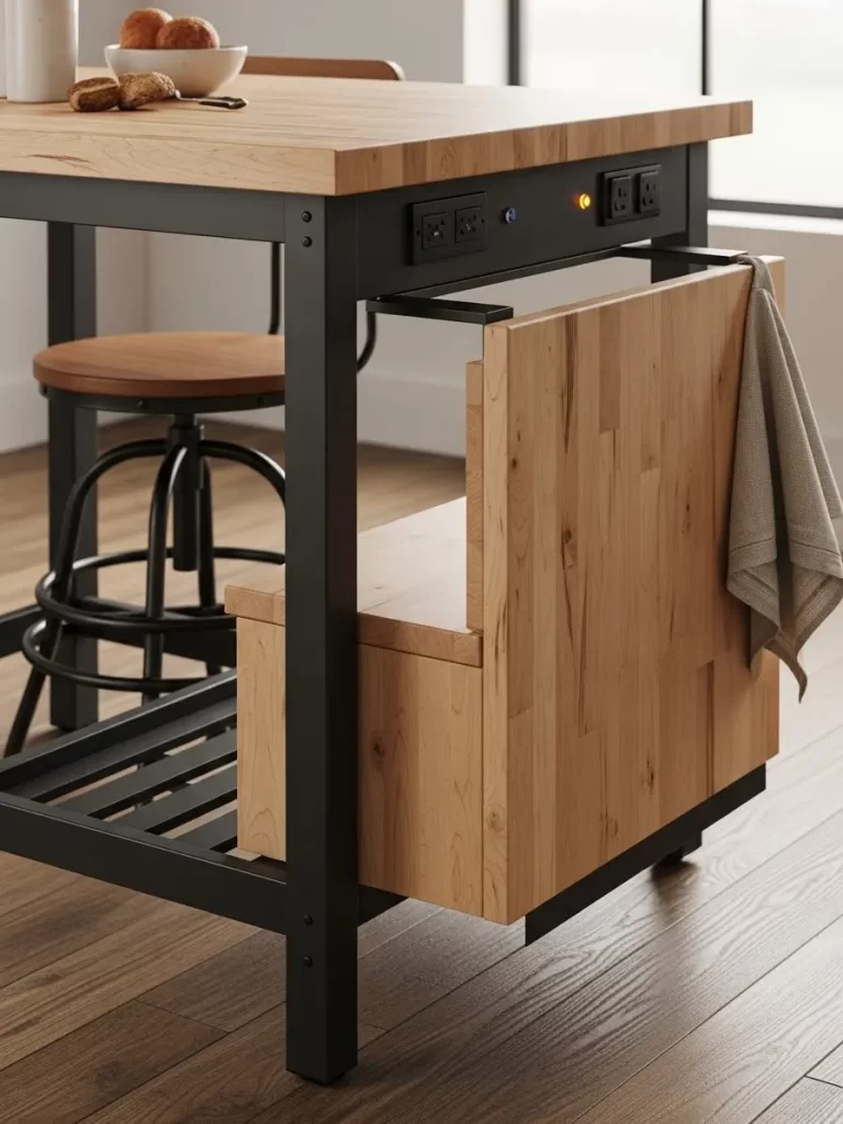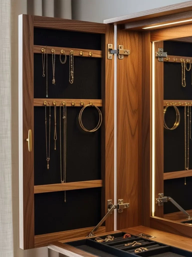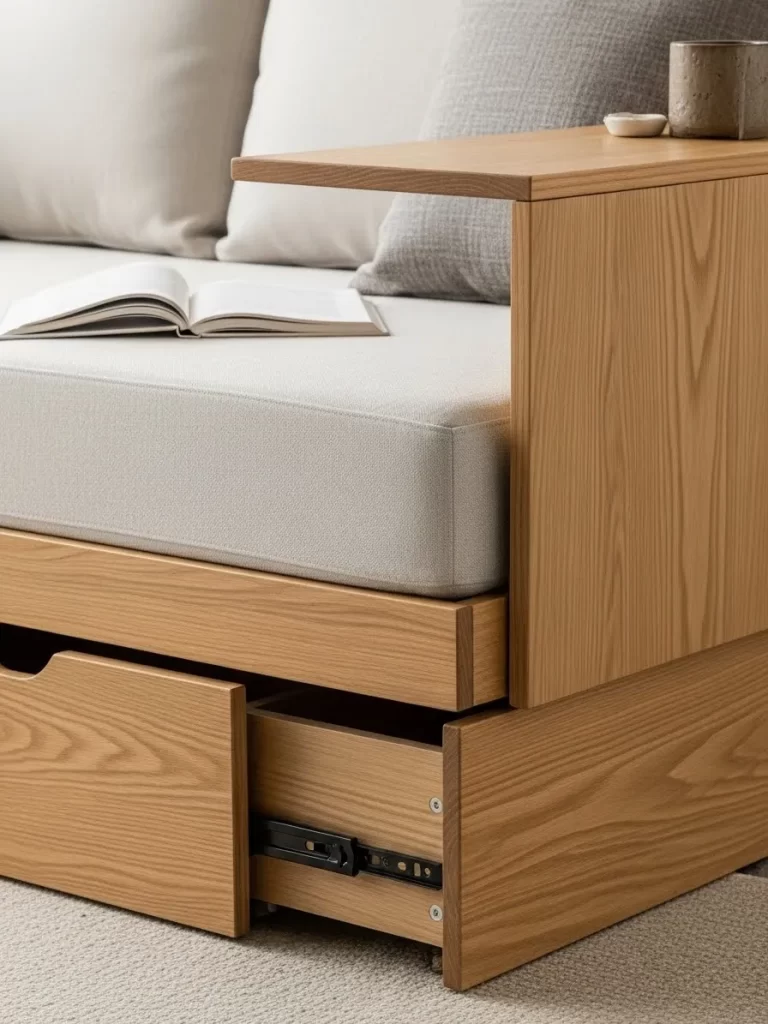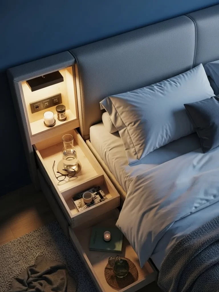 - Hidden storage keeps your belongings out of sight to reduce visual noise.
