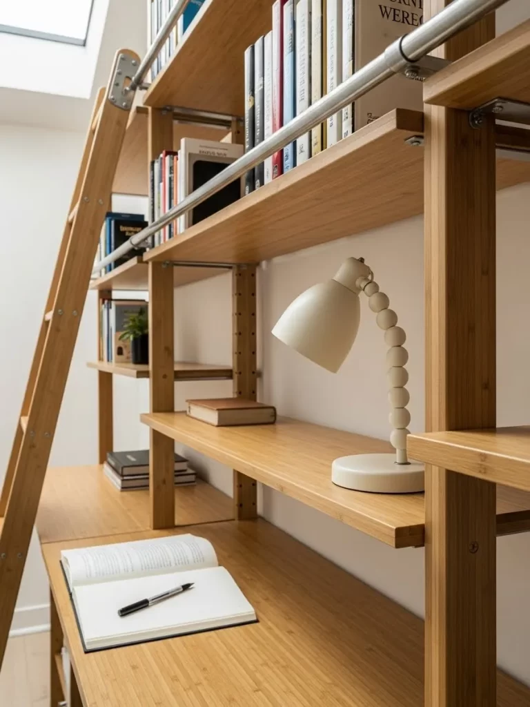 Small apartments often struggle to balance work and rest in a single room. This clever furniture piece solves that problem by combining a comfortable sleeping area with a spacious workstation. The light wood finish keeps the room feeling airy and open.