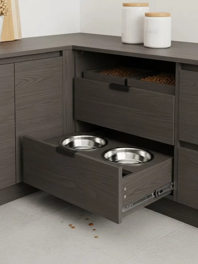 This design functions as both a grooming station and a home office. It takes up zero floor space because it bolts directly into the wall. You can install it at any height to suit your favorite chair.