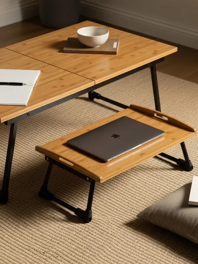 The smooth bamboo finish is durable and easy to clean with a cloth. You can fold the legs flat to store the desk under your bed. It is a light and portable solution for remote workers.