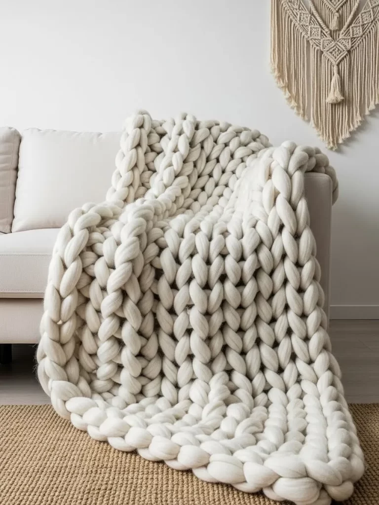 - Drape the blanket over the edge of a leather sofa or a wooden bench.