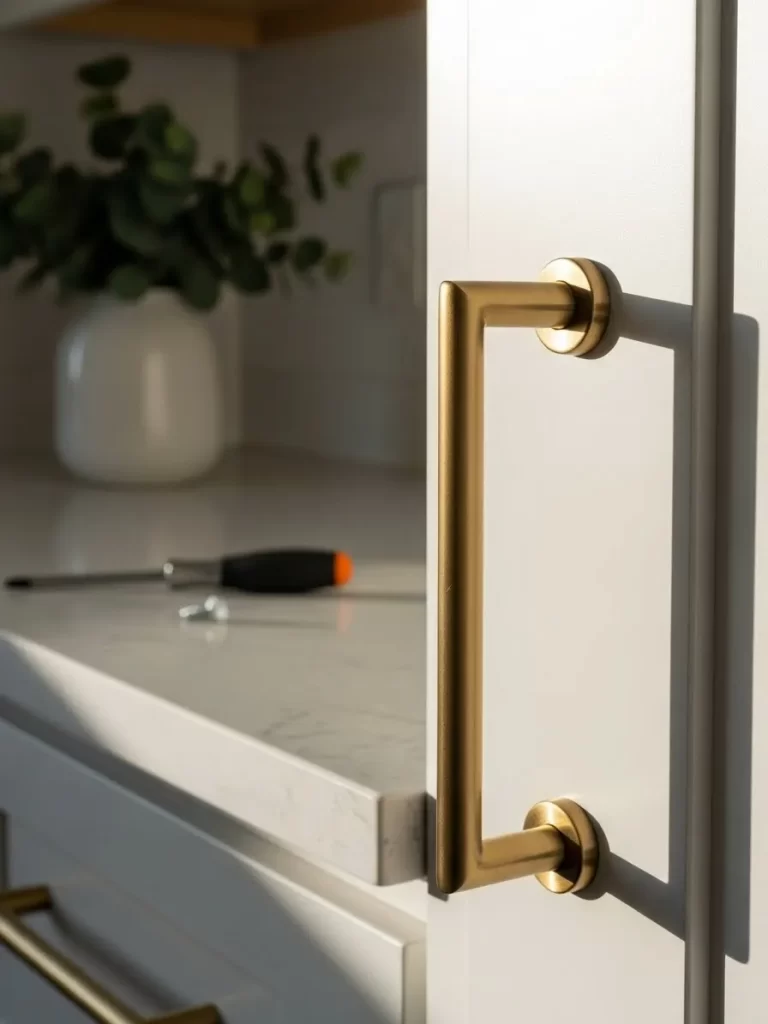 Updating your kitchen does not require a massive budget or weeks of messy construction work. Swapping out old knobs for sleek brushed gold handles provides an instant facelift to any room. These metallic accents add warmth and a touch of luxury against classic white cabinetry.