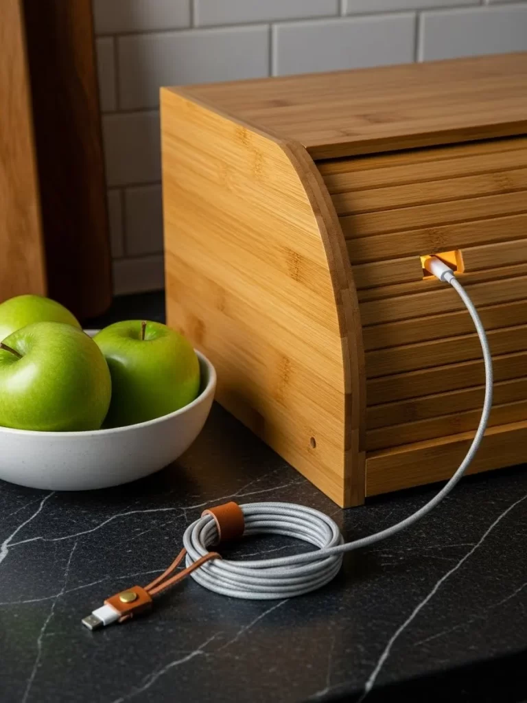 Gray or white colors blend in with modern kitchen machine finishes perfectly. Managing your cables prevents them from getting wet or dirty during spills. This smart fix takes only a minute to install at home. People will notice how clean your countertop looks without any wires.
