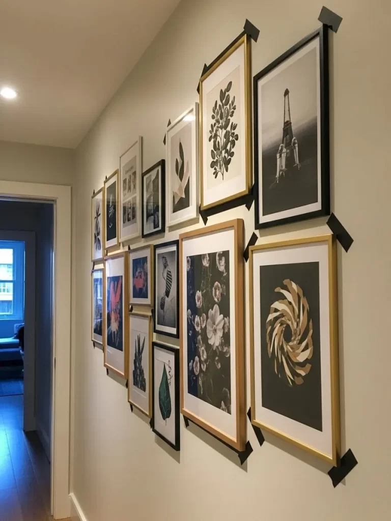Poking holes for art prints is a common rental nightmare. A single rod with hooks allows you to swap art easily. Your walls stay smooth and completely free of any damage. This setup looks very professional and keeps your art organized.