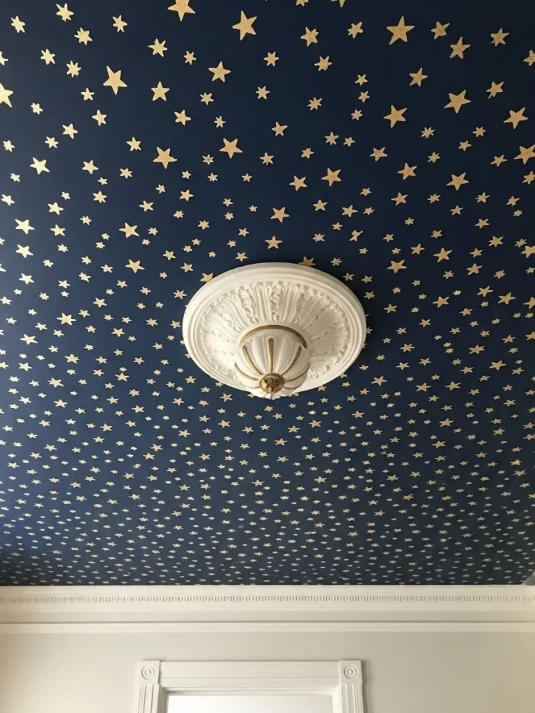 Ceilings are often the most ignored part of a rental room. Sticking gold stars on a dark surface creates a dream space. This works wonders for a child or a primary bedroom. You will enjoy looking up at the sky before you fall asleep.