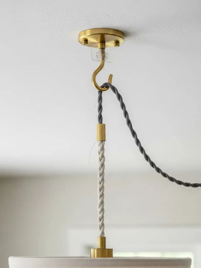 Lighting often sits in the wrong spot in a rental apartment. A swag hook allows you to move a lamp exactly where you need it. This hack fixes dark corners over a dining table. You get better light without calling an expensive electrician.