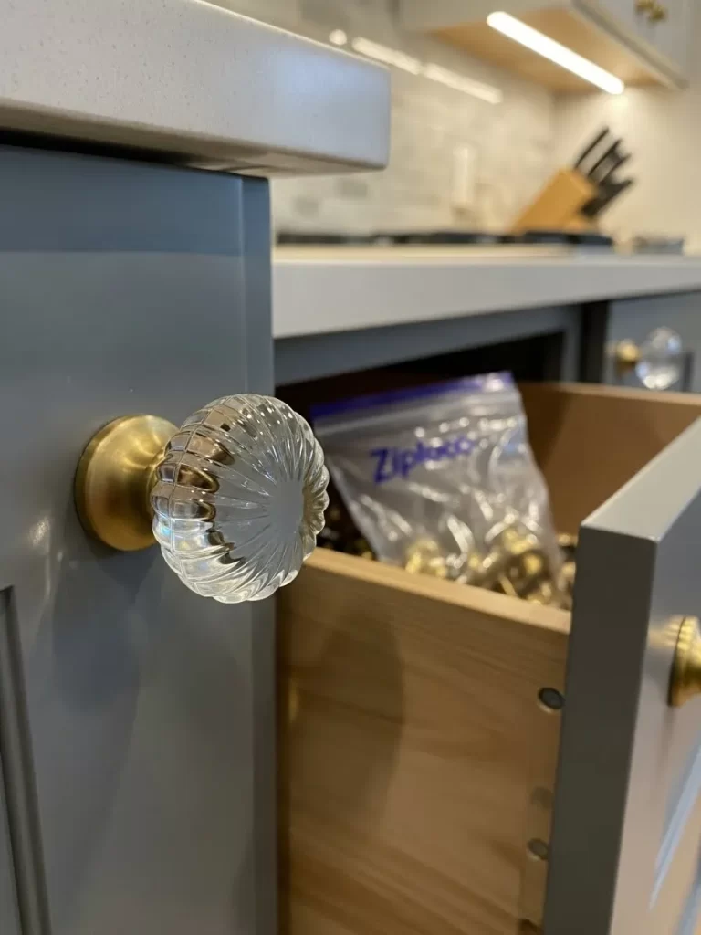 Basic handles look boring in most rental apartments. Swapping them for crystal knobs adds a touch of class. Your cabinets will feel like custom furniture in minutes.