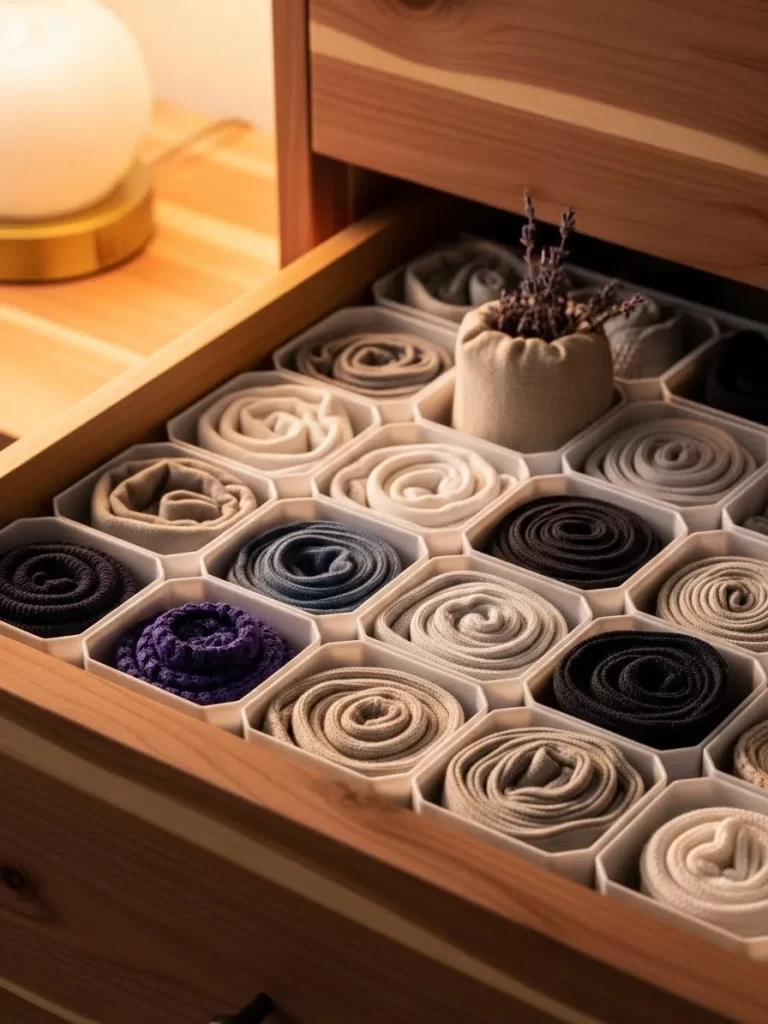 - Use a side area of the drawer to coil your rubber bands for easy grabbing.