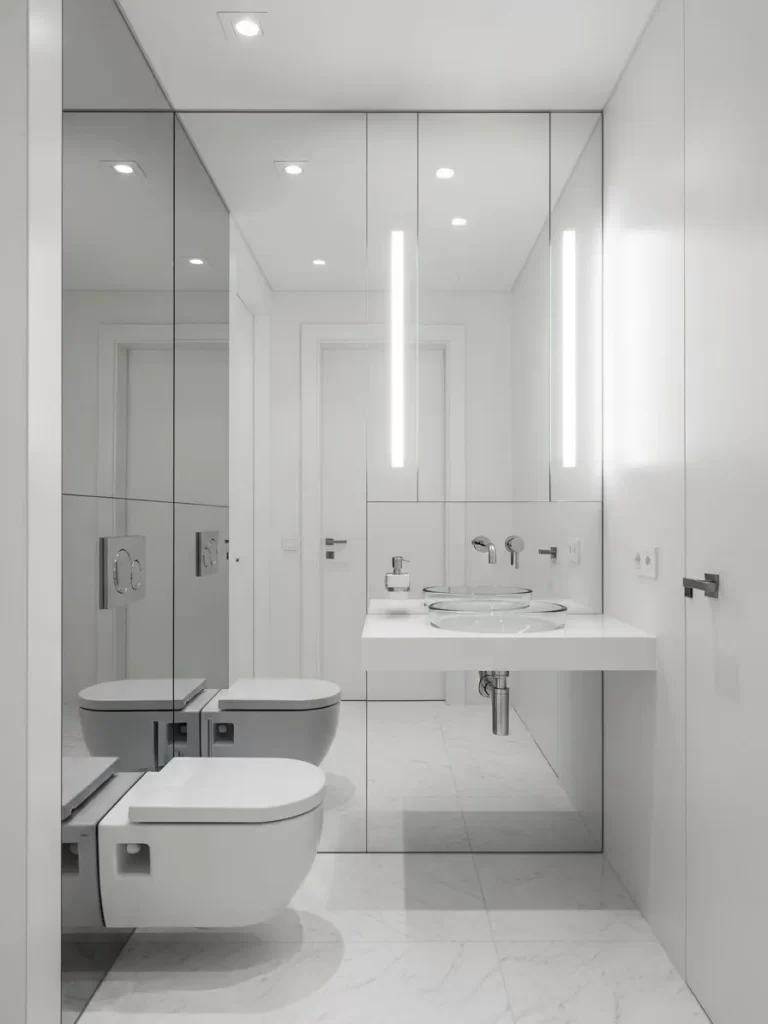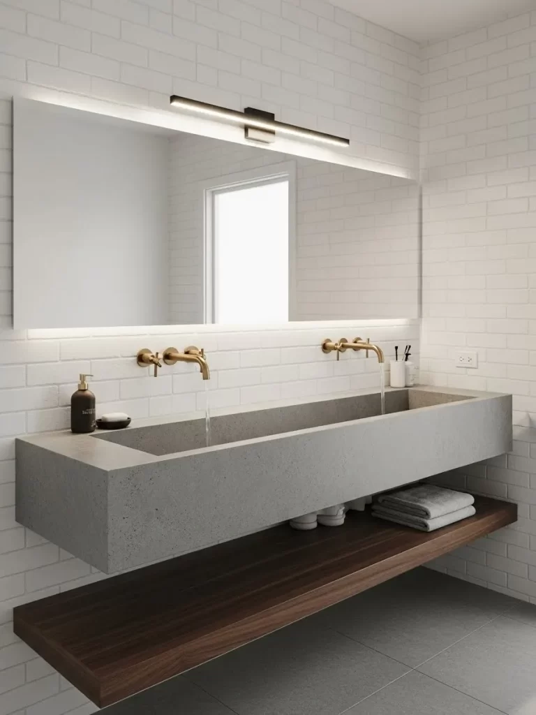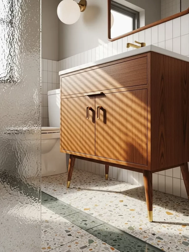 Floating vanities keep the floor visible and create an airy look. This simple change makes any small bathroom feel much wider and easier to clean.