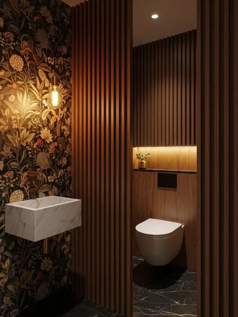 Natural materials like wood and stone add warmth to hard tile surfaces. These textures prevent a small room from feeling cold or clinical.