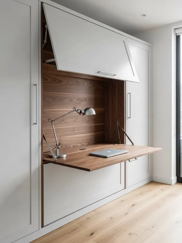 - Float Everything: Mount desks, consoles, and shelves on the wall to expose the maximum amount of floor.