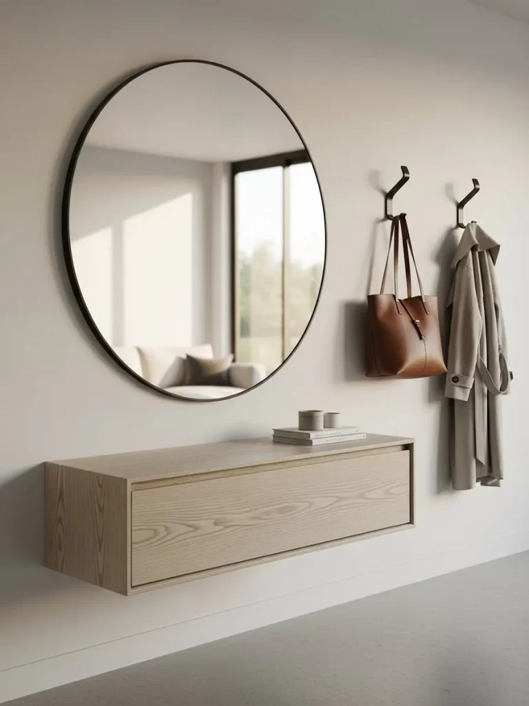 Mirrors are essential in small foyers. They not only provide a final look before leaving but also reflect light. This reflection instantly creates the illusion of a larger, brighter space, which is always welcoming.