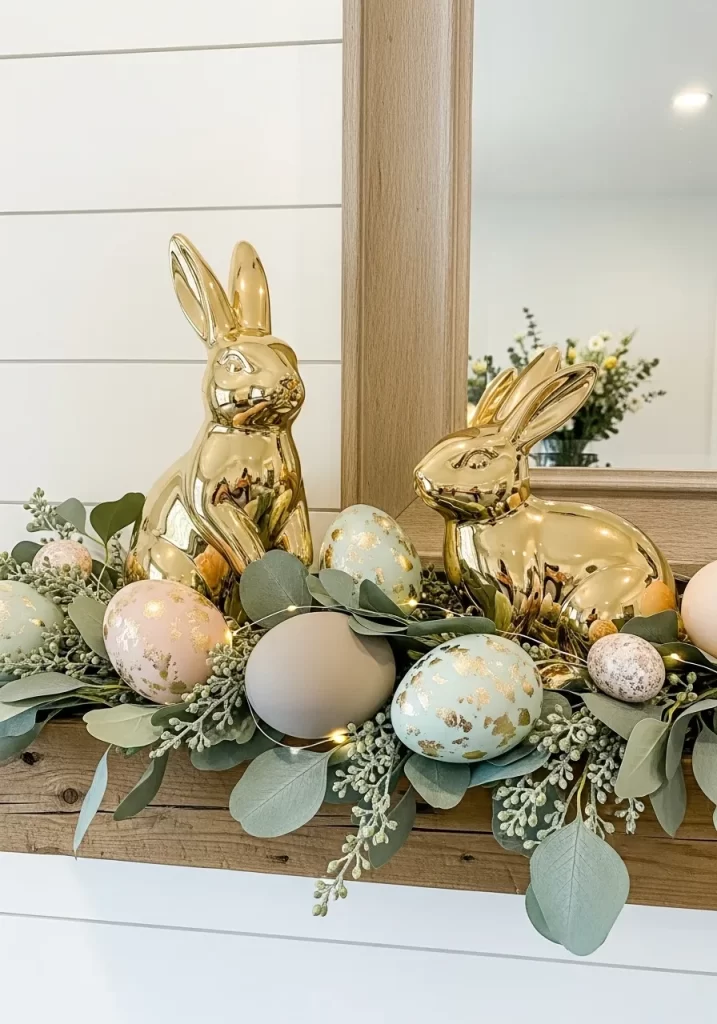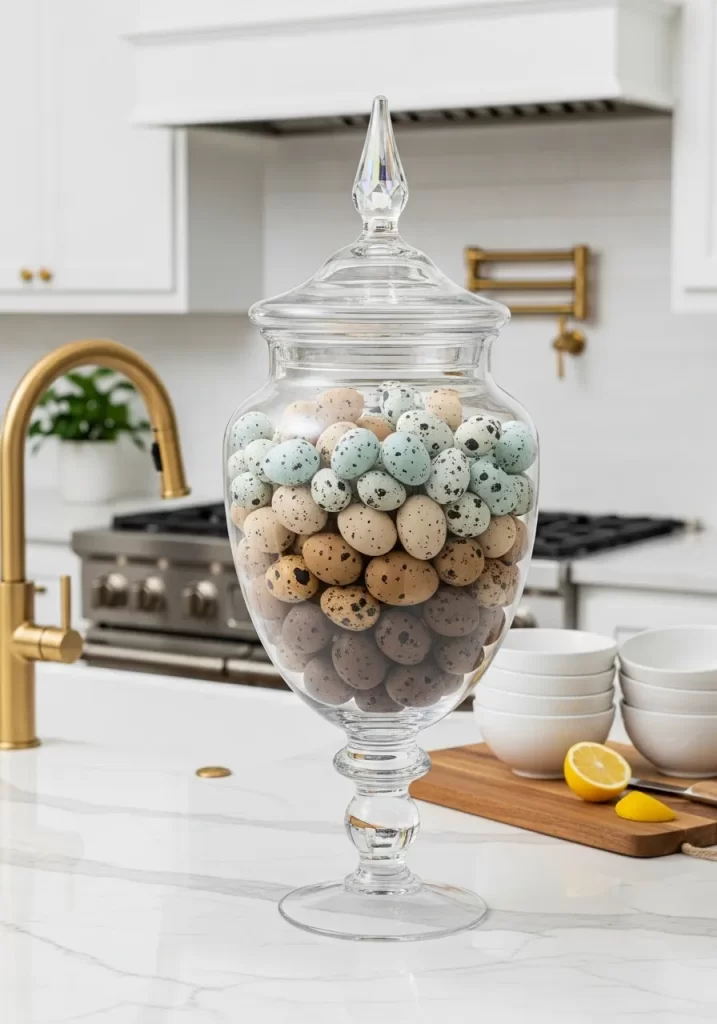 - Decorative speckled eggs in pastel colors