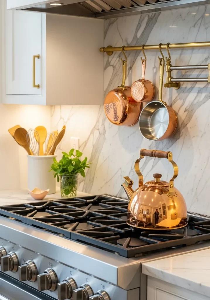 - Arrange your tinted glassware and gold cutlery around each setting.