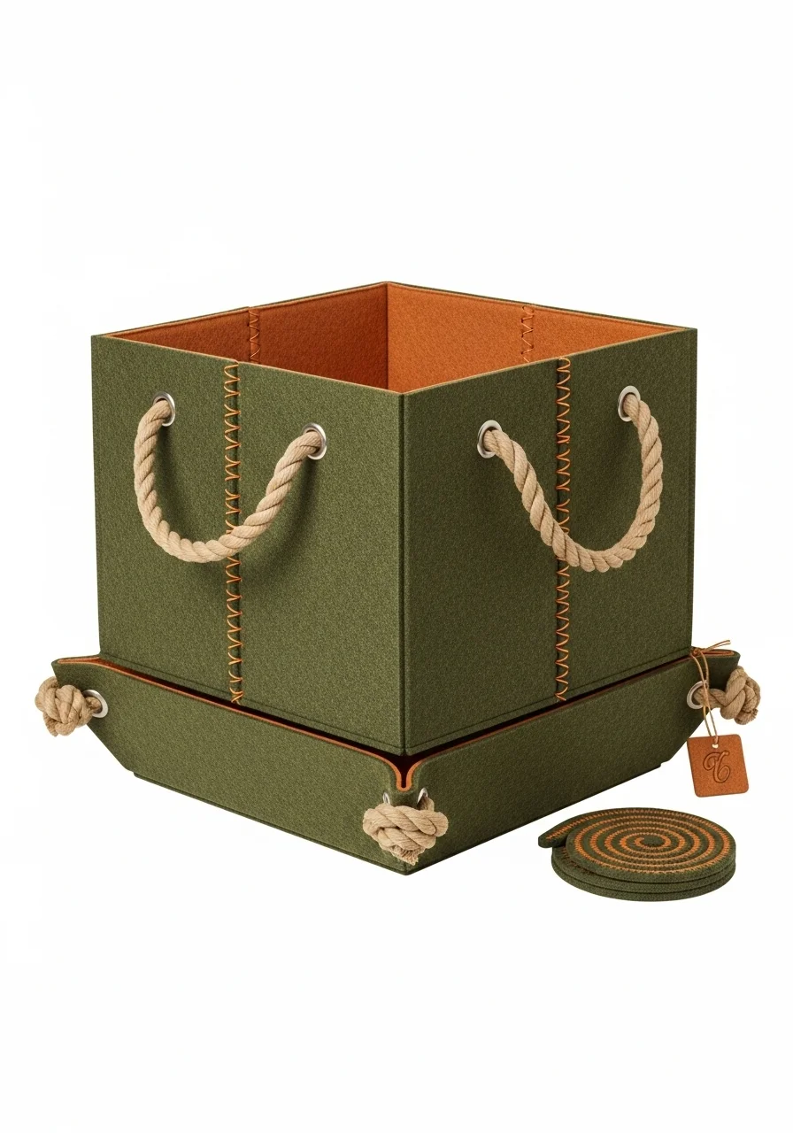 - Attach Corner Accents: Take the faux leather triangles. Place one triangle on each of the eight external corners of the box. Secure them tightly with glue. You can also use heavy-duty thread and a needle to add decorative stitching to the edges for an authentic look, piercing through the felt and the leather.