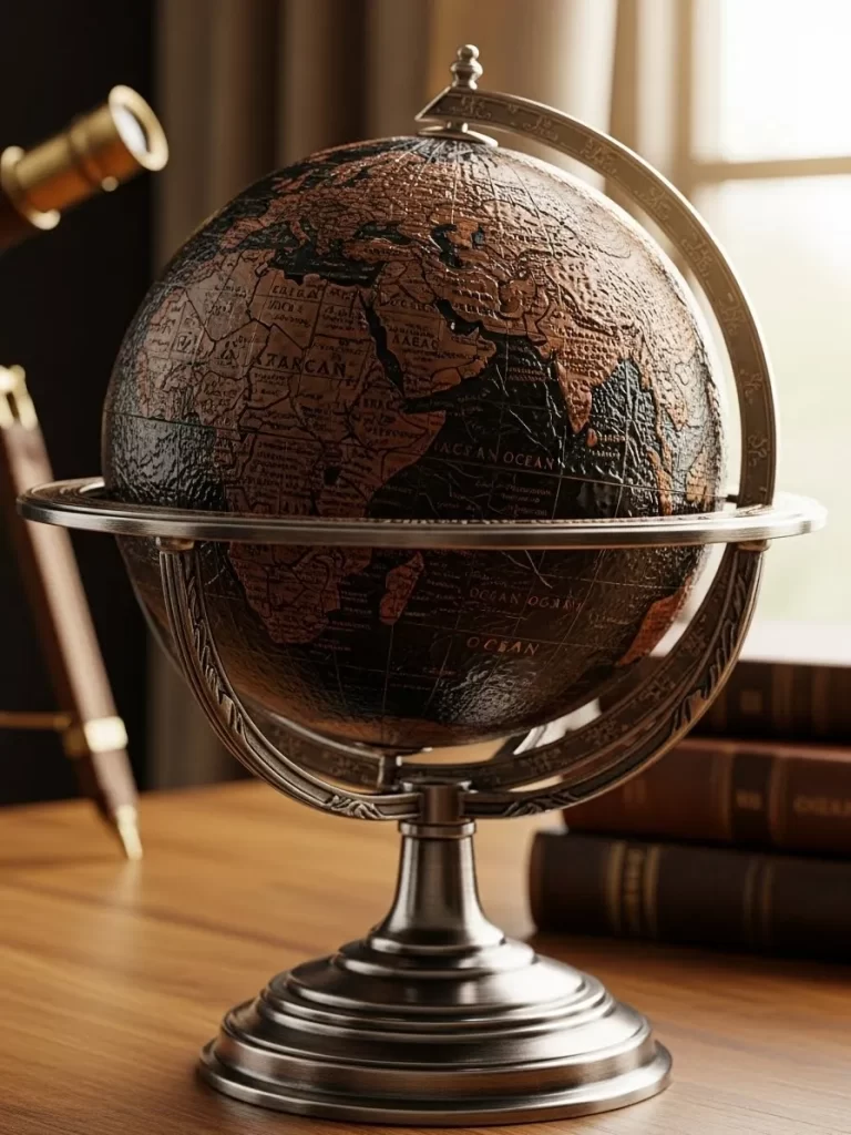 Incorporating objects with intellectual curiosity and historical texture is a simple way to elevate basic decor. This globe acts as an instant centerpiece, adding gravitas and a tactile, non glossy element that speaks to a love for history and travel.