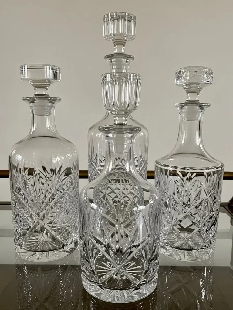 Displaying functional items like this in a cohesive group is a foolproof styling trick to move past basic decor. These decanters introduce timeless elegance and incredible light play, creating a sophisticated visual focal point.