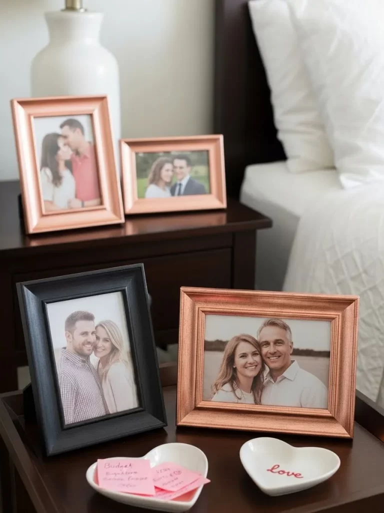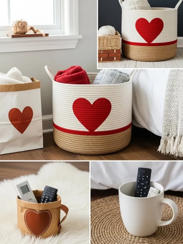 Incorporate romantic themes into functional pieces. Use bold heart decals on storage baskets, personalized photo frames, or elegant glassware. This keeps the décor playful and intentional, rather than just clutter.