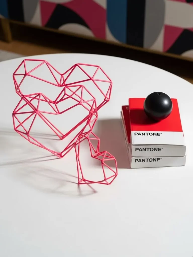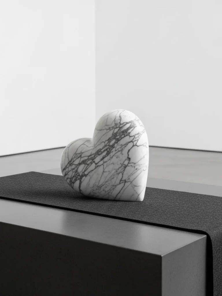 Modern design often relies on clean lines and simple shapes to make a statement. A matte white vase shaped like a biological heart offers a clever twist on traditional decor. This piece sits atop a stack of light gray books for a clean look. You can keep your space feeling open and airy with this choice.