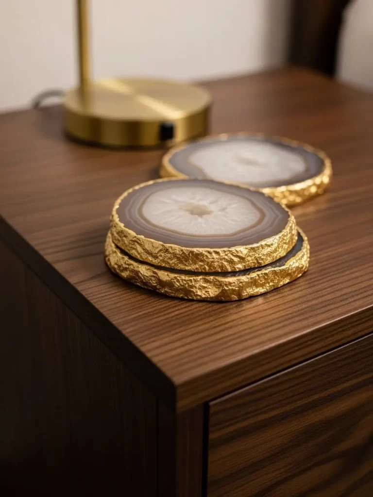 Coordinating your accessories helps create a cohesive and calm environment. This box pairs perfectly with wooden furniture and brass lamps. It is a simple way to add a masculine touch to romantic decor.