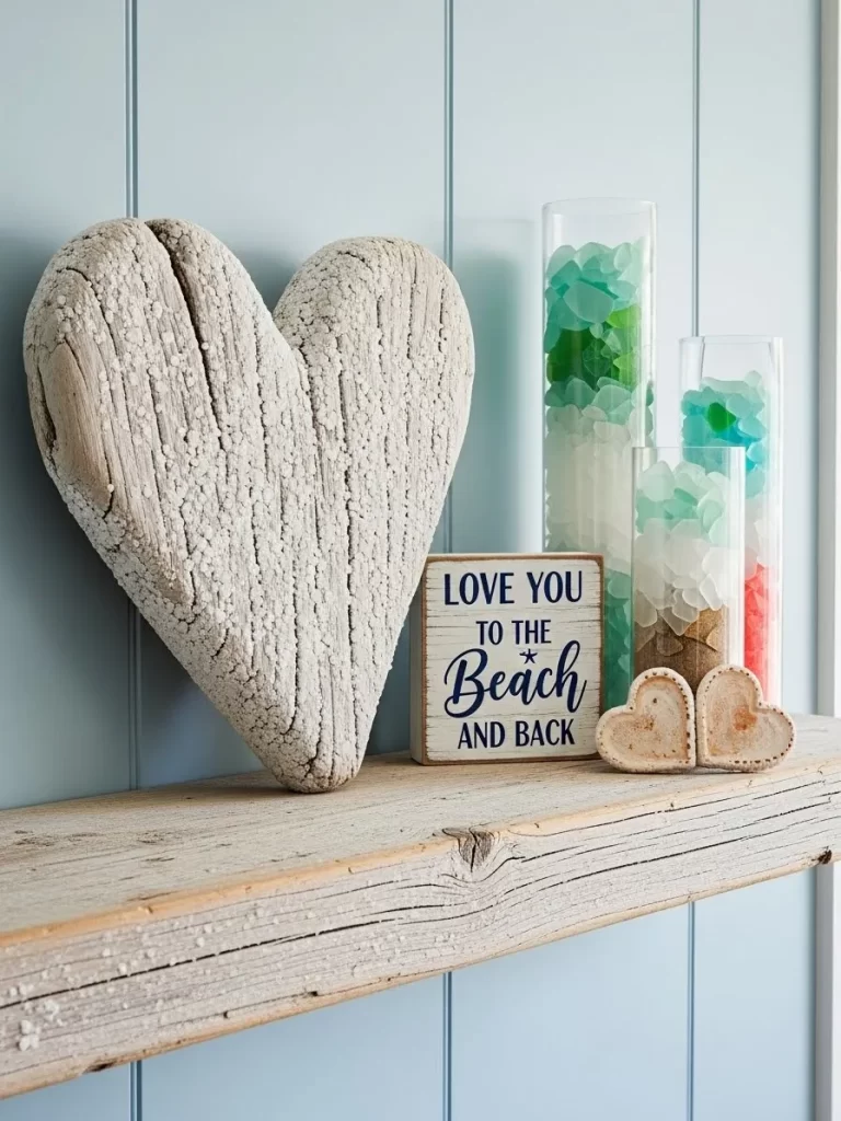 - Scatter the wooden hearts around the base of the lantern and crate.