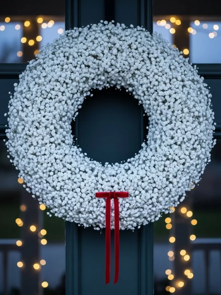 Small white pearls sit in the center of each flower to add a touch of elegance and shine. A long velvet bow drapes down from the bottom of the circle for extra drama. Each petal feels soft and looks high quality against a white door. You can easily match these colors to your existing porch decor. Crafting this piece allows you to express your creative side while making something unique.